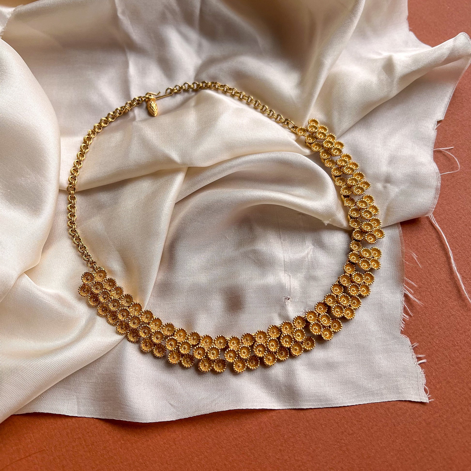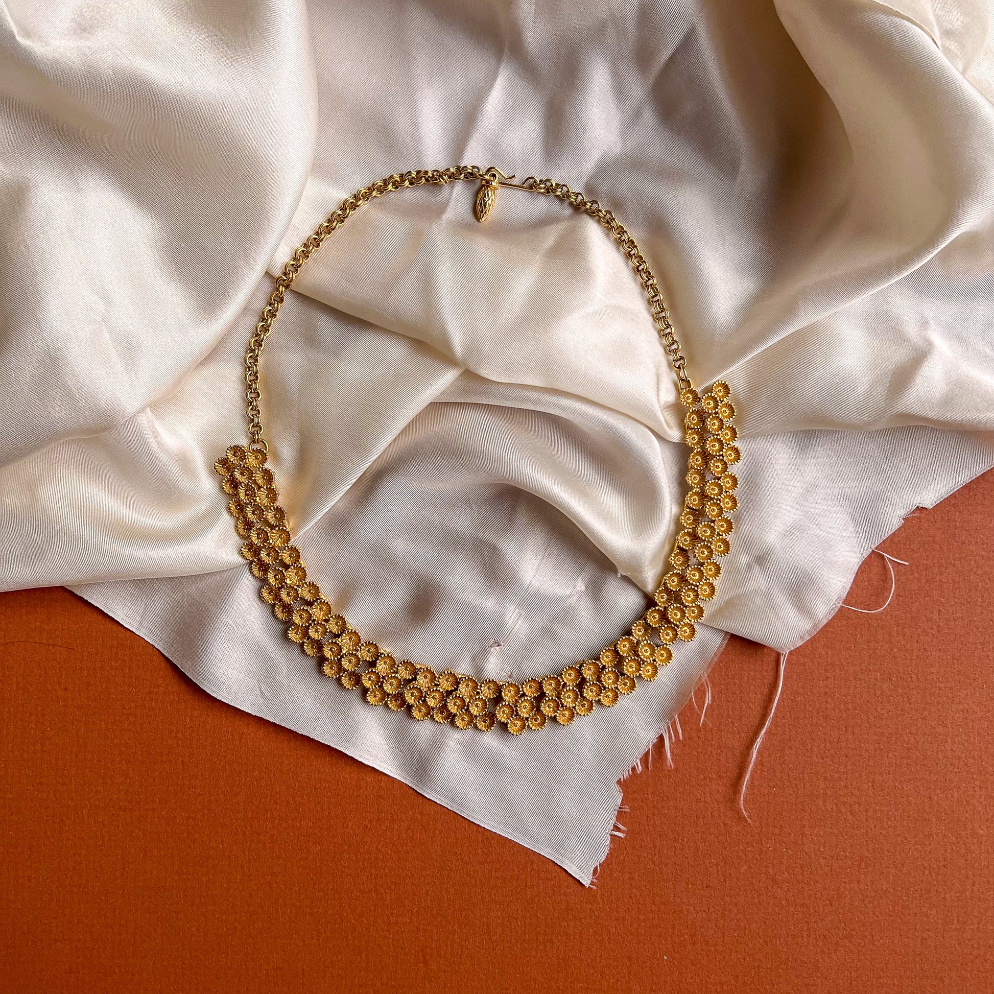 1950s Gold Collar Necklace With Layered Tiny Flowers