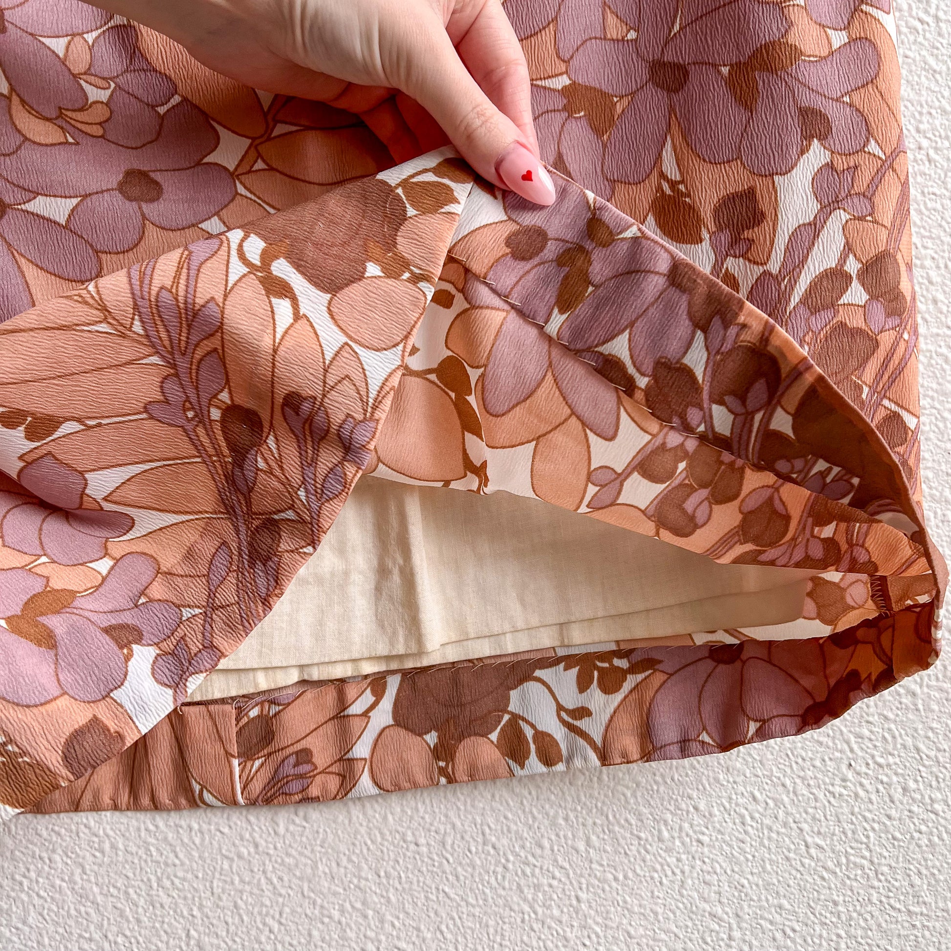 1960s Taupe Floral Novelty Print Shift Dress (M/L)