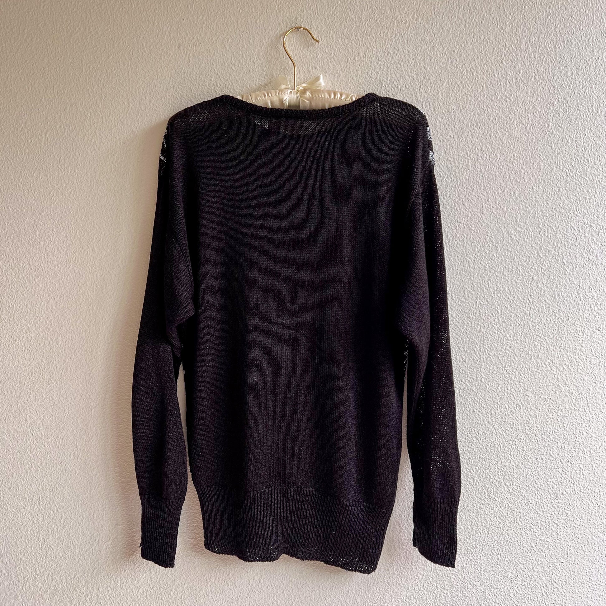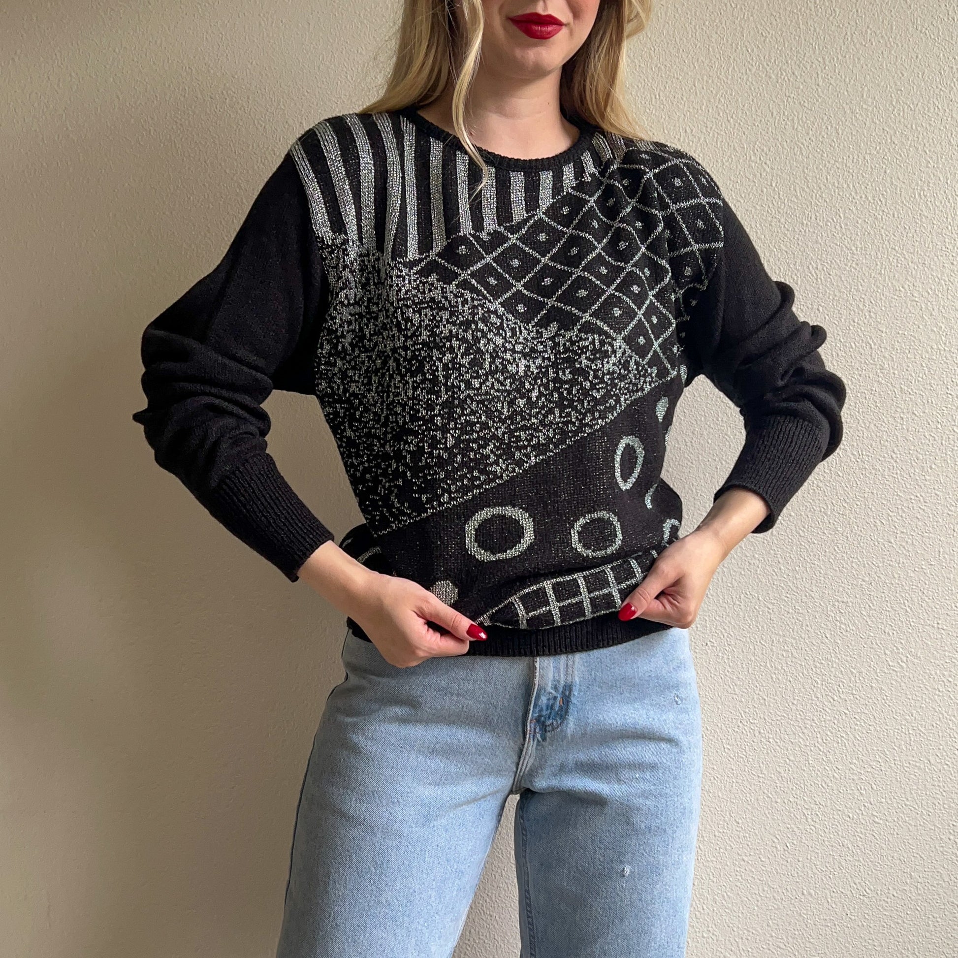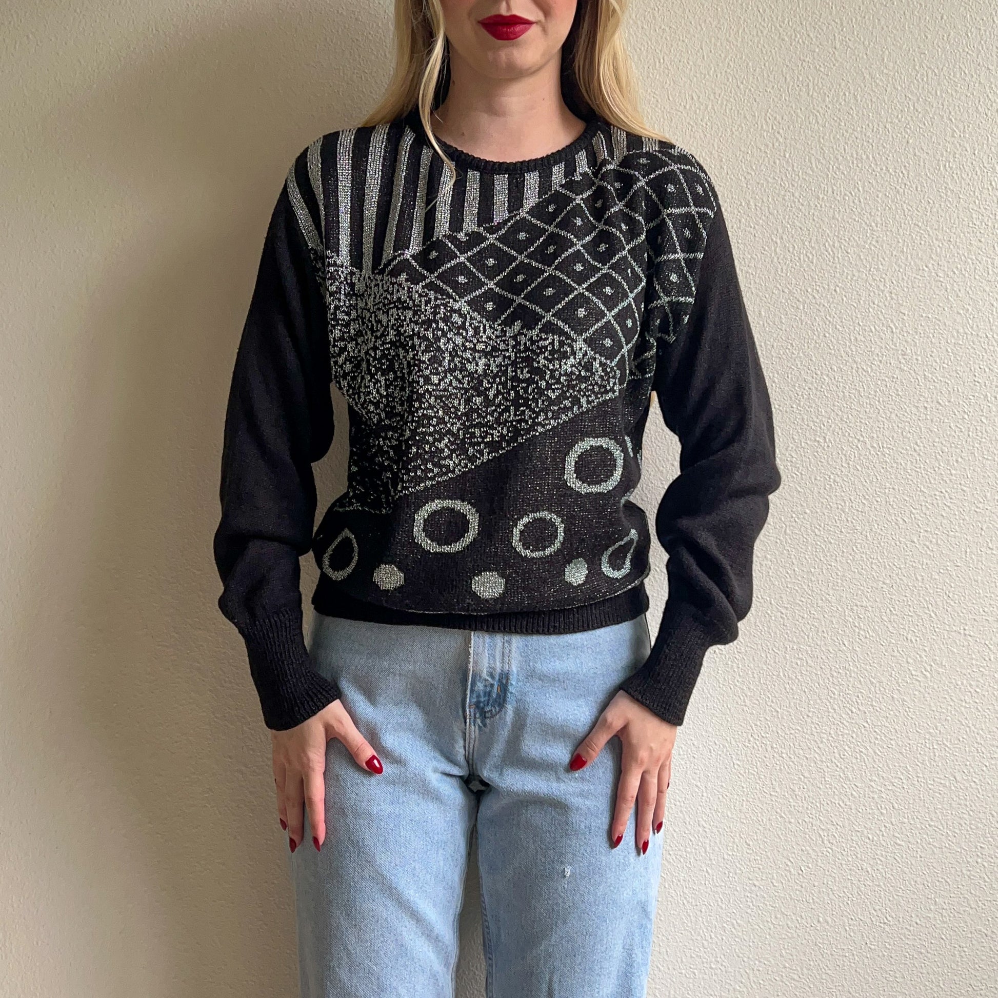 1980s Black Long Sleeve Sweater With Silver Design (S/M)
