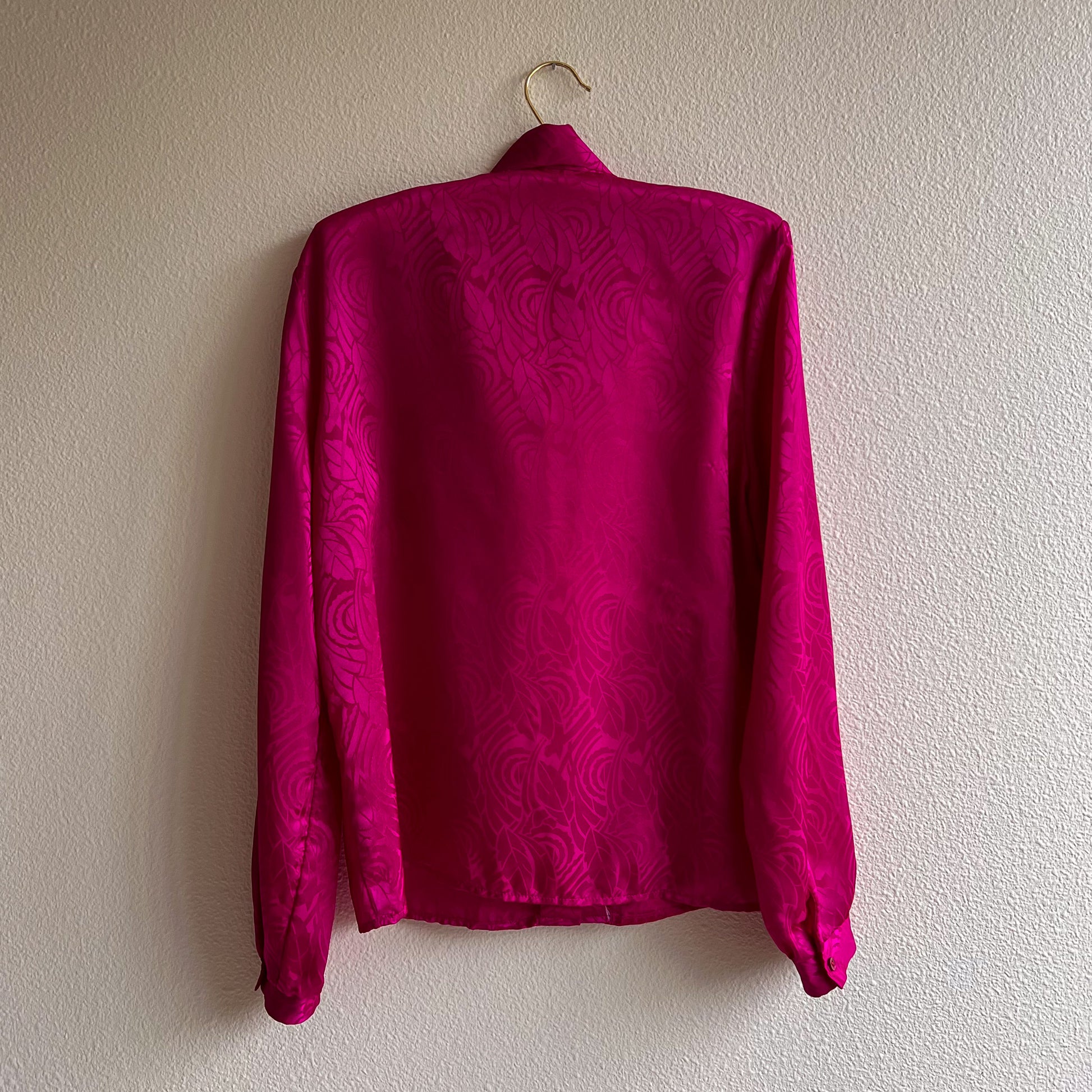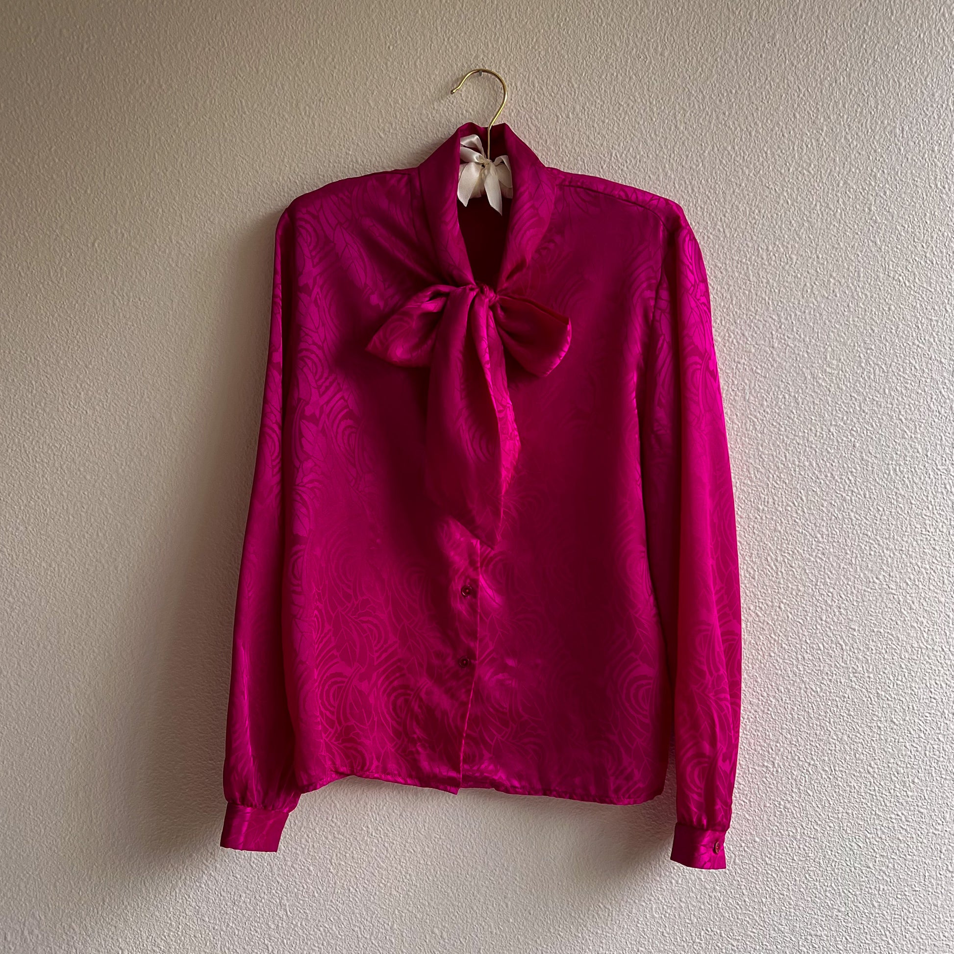 1980s Magenta Satin Blouse With Pussy Bow (M/L)