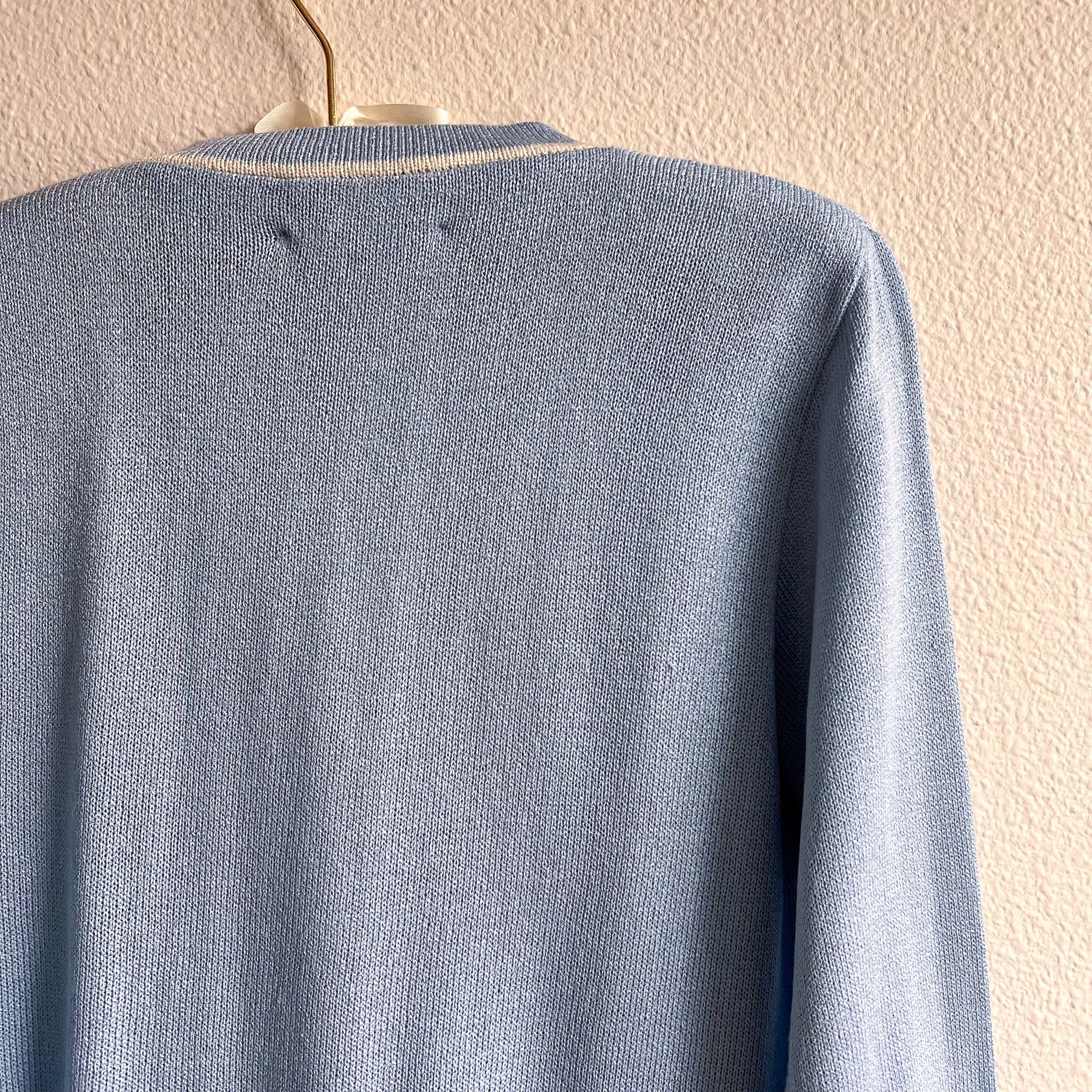 1980s Pale Blue Cardigan With White Trim (S/M)