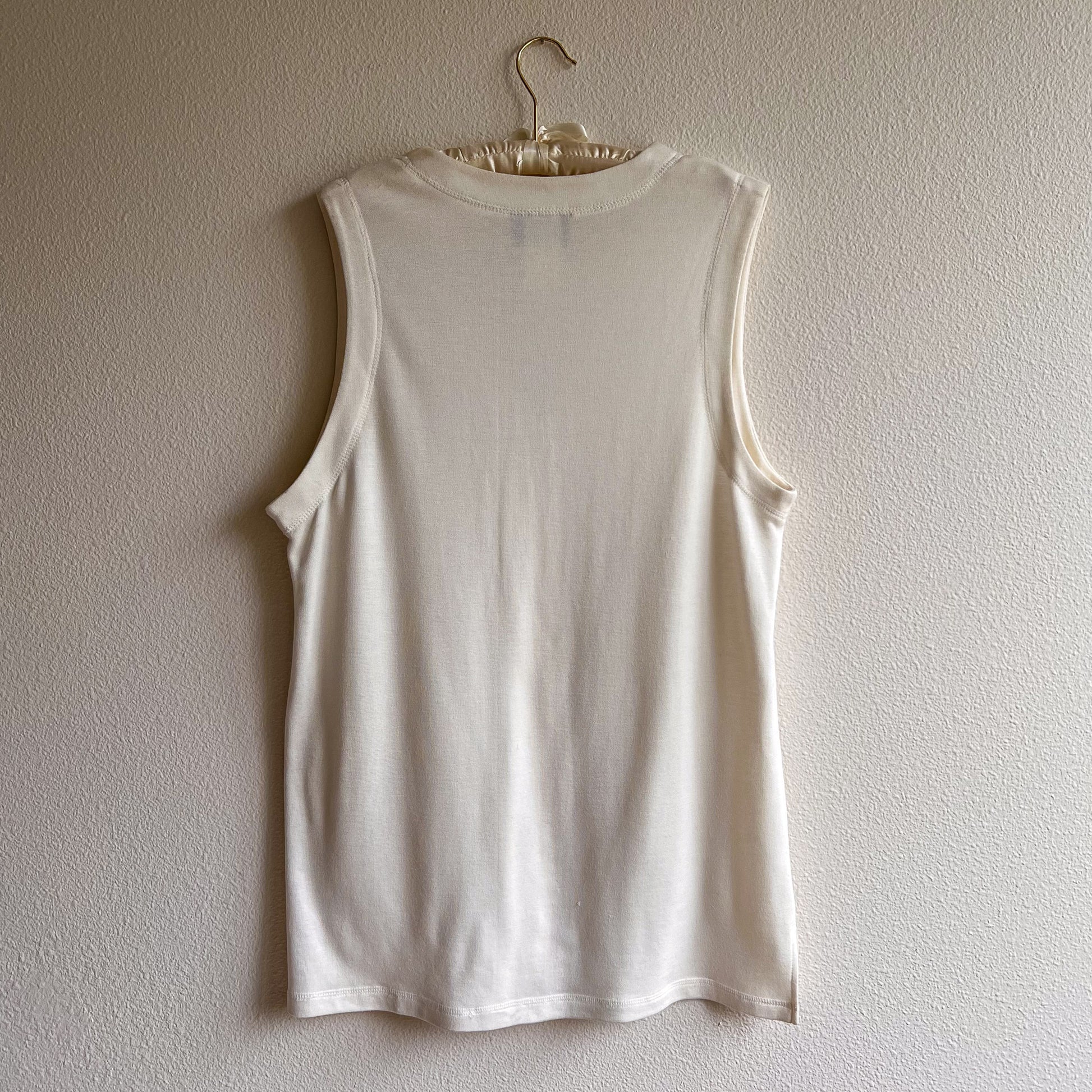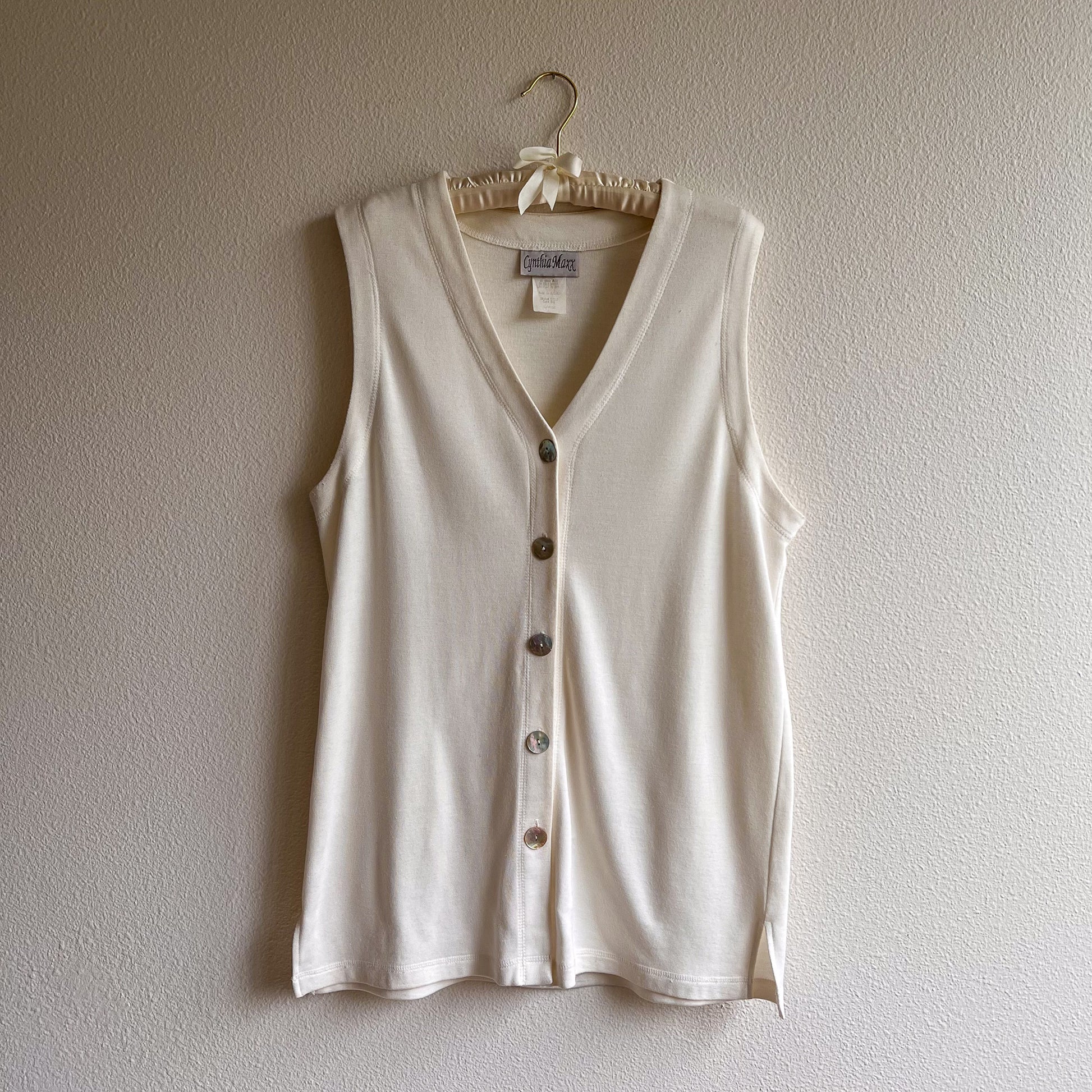 1990s White Sleeveless Cardigan With Abalone Buttons (L/XL)